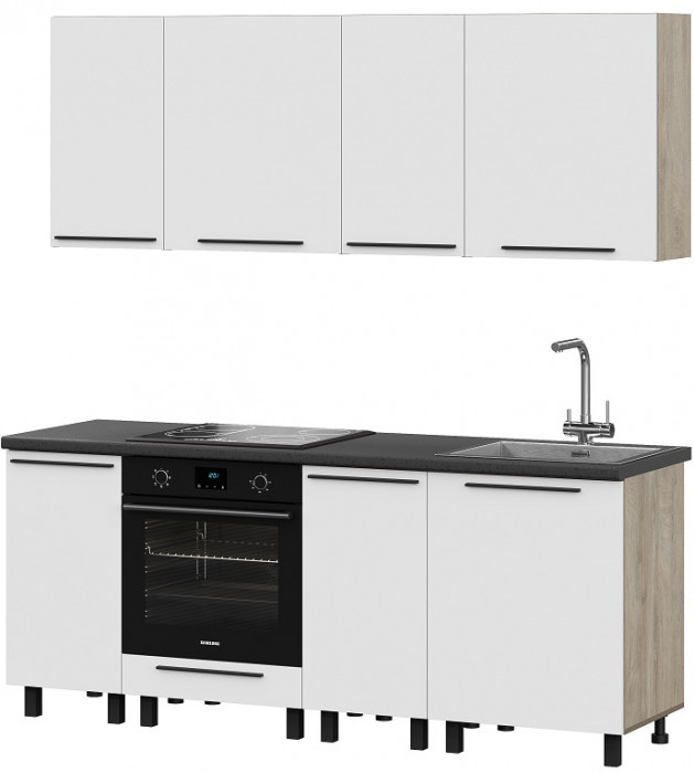 Модульная кухня Этна софт вайт выполнена в стиле контемпорари. Теплое сочетание необработанного древесного распила дуба на корпусе и светлых фасадов создаст особенную атмосферу у Вас дома. Разнообразие модулей позволит собрать уникальный комплект шкафов, учитывающий размеры и планировку Вашей кухни. Готовьте с удовольствием с кухней Этна.